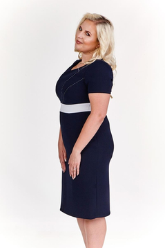 Szukasz sukienki na specjalną okazję, imprezę rodzinną a może na jakieś bardziej oficjalne wydarzenie? Sukienka prosta, elegancka. Bardzo ładnie odszyta, cięcia francuskie pięknie podkreślają linie sylwetki. Prosty fason, gładki materiał. Odcięta w pasie szerokim pasem w innym kolorze. Dodatkowo ozdobiona na biuście szwami ozdobnymi. Z powodzeniem możesz do niej nosić żakiety i marynarki. W połączeniu z odpowiednimi dodatkami możesz stworzyć niesamowity styl.