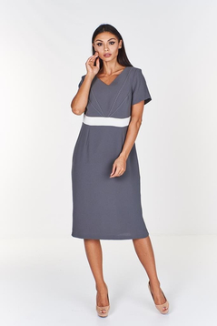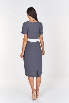 Szukasz sukienki na specjalną okazję, imprezę rodzinną a może na jakieś bardziej oficjalne wydarzenie? Sukienka prosta, elegancka. Bardzo ładnie odszyta, cięcia francuskie pięknie podkreślają linie sylwetki. Prosty fason, gładki materiał. Odcięta w pasie szerokim pasem w innym kolorze. Dodatkowo ozdobiona na biuście szwami ozdobnymi. Z powodzeniem możesz do niej nosić żakiety i marynarki. W połączeniu z odpowiednimi dodatkami możesz stworzyć niesamowity styl.