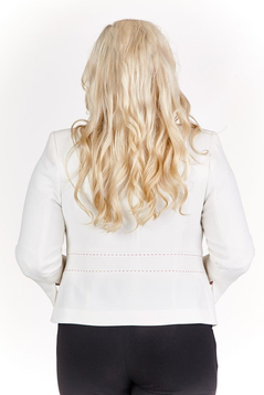 Szykuje się jakaś specjalna okazja, impreza rodzinna, wesele? Piękny żakiet -klasyka elegancji. Z charakterystycznymi, kontrastowymi szwami w bardzo niezwykle, eleganckim, wizytowym stylu. Ozdobne jedno zapięcie. Żakiet to Efektowny element naszej garderoby. W połączeniu z sukienką lub spódnicą możesz stworzyć szykowny powiew stylizacji na wiosnę/lato.