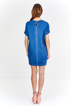 Kimono, luźna sukienka. Uszyta została z miłej w dotyku dzianiny. Dekolt okrągły. Rękaw kimono rozcięty od góry długość rozcięcia około 12 cm. Tył prosty. Dół wykończony ściegiem krytym. Bez suwaka, bez podszewki. Z tyłu na szyi pęknięcie zapinane na mały guzik. Sukienkę polecamy kobietom w każdym wieku, idealna na co dzień do pracy, jak również na uroczyste prywatne spotkania.