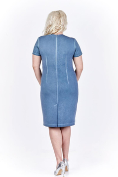 Sukienka dopasowana, ołówkowa. Dekolt o oryginalnym kształcie z błyszczącymi ozdobami wyglądającymi jak naszyjnik . Cięcia pionowe wyszczuplają sylwetkę. Materiał główny to średniej grubości dzianina, bardzo przyjemna w dotyku. Rękawy i kontrastowe wstawki zostały uszyte z żakardu, z widoczną strukturą. Jest to bardzo wysokiej jakości tkanina. Bez podszewki. Z tyłu suwak kryty, na dole rozporek zakładany. Sukienkę można nosić na co dzień, ale po odpowiedniej stylizacji można w niej wystąpić nawet na uroczystych spotkaniach.