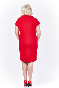 Ołówkowa sukienka, dopasowana jest w biodrach, natomiast w pasie oraz biuście luźna. Rękaw krótki, - kimono. Dekolt łódka, odstający na ramionach, tworzy kształt komina. Przy szyi znajduje się srebrna, dopinana broszka. Sukienka uszyta została z bardzo dobrej gatunkowo tkaniny. Bez podszewki. Z tyłu suwak kryty oraz rozporek umożliwiający swobodne chodzenie. Sukienkę polecamy kobietom w każdym wieku na co dzień, ale przy odpowiednim dobraniu dodatków sprawdzi się również w wyjściowej stylizacji. Jeśli chcesz wyglądać pięknie i czuć się komfortowo, to ta sukienka jest waśnienie dla Ciebie.