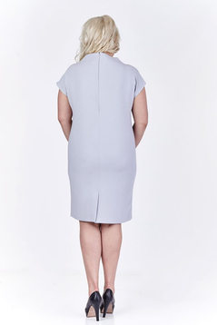 Ołówkowa sukienka, dopasowana jest w biodrach, natomiast w pasie oraz biuście luźna. Rękaw krótki, - kimono. Dekolt łódka, odstający na ramionach, tworzy kształt komina. Przy szyi znajduje się srebrna, dopinana broszka. Sukienka uszyta została z bardzo dobrej gatunkowo tkaniny. Bez podszewki. Z tyłu suwak kryty oraz rozporek umożliwiający swobodne chodzenie. Sukienkę polecamy kobietom w każdym wieku na co dzień, ale przy odpowiednim dobraniu dodatków sprawdzi się również w wyjściowej stylizacji. Jeśli chcesz wyglądać pięknie i czuć się komfortowo, to ta sukienka jest waśnienie dla Ciebie.
