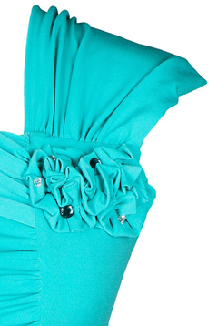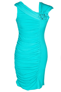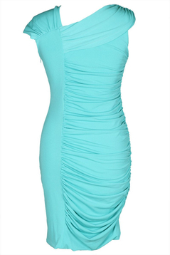 Dopasowana, seksowna sukienka uszyta z najwyższej jakości dzianiny. Asymetryczny dekolt, z boku przez całą długość przebiega fantazyjne drapowanie. Dostępna w wielu jednolitych kolorach, jak również w różnorodnych wzorach. Plecy częściowo odkryte, długość uniwersalna. Dzianina, którą użyto do uszycia sukienki jest bardzo elastyczna. Opina ciało, podkreślając kobiece kształty. Idealna na wesela, przyjęcia urodzinowe i wiele innych imprez. Szczególnie polecamy młodym kobietom.
