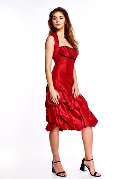 Szukasz wyjątkowej sukienki na karnawał, sylwestra, wesele lub studniówkę? Niesamowicie efektowny model, który wyraźnie zaznacza talię. Dół sukienki w specjalny sposób marszczony. Kreacja dla kobiet , które chcą podkreślić swoją osobowość. Sukienka składa się z dwóch części - spódnica zapinana z tyłu i gorset z wszyta szeroką gumą, dzięki któremu nieco podniesiesz, wymodelujesz biust, poprawisz swoja postawę. Sprawisz, że poczujesz się kobieco i wdzięcznie. Sznurowaniem z tyłu odpowiednio umocnisz i dopasujesz gorset do swojej sylwetki. Góra wykończona koronkową tasiemką. Tkanina gładka w jednolitym kolorze z połyskiem, w połączeniu z odpowiednimi dodatkami stworzysz wyjątkową kreacje, podkreślając przy tym swoją urodę. Spraw by ten wieczór był wyjątkowy a impreza niepowtarzalna.
