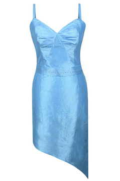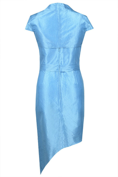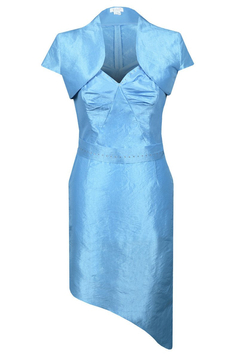 Elegancka sukienka z tafty eksponująca nogi. Jej asymetryczny fason nadaje jej seksapilu. Długość mini. Wykonana z połyskliwej tafty. Dodatkowym atutem jest bolerko wykonane z tego samego materiału. Idealna kreacja na karnawał, sylwester, studniówkę, czy imprezę w gronie znajomych.