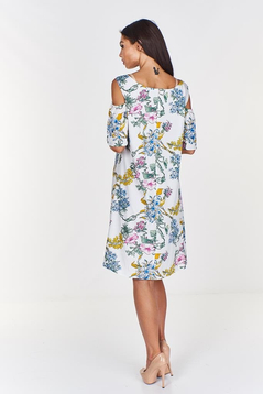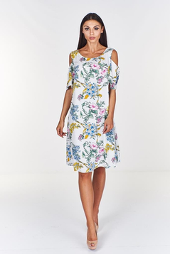 Sukienka idealna na słoneczne dni. Fason w trapez pozwoli Ci poczuć się swobodnie i komfortowo na co dzień jak i w pracy. Model ten ukryje niedoskonałości sylwetki zbyt obfite uda czy szerokie biodra. Z powodzeniem możesz do niej nosić pasek i podkreślić tym szczupłą talię. Tkanina wzorzysta, w różnych odcieniach. W ciemniejszych barwach wystroisz się na wieczór, randkę z ukochanym. Dzięki kwiecistym wzorom sukienka nabiera mocno kobiecego uroku. Dobierz odpowiednie dodatki i stwórz stylizację na wiele okazji, wypad na miasto z przyjaciółmi czy imprezę w plenerze. Materiał bardzo miły w dotyku nie rozciągliwy, pod spodem podszewka. Suwak na plecach ułatwia zakładanie.