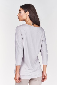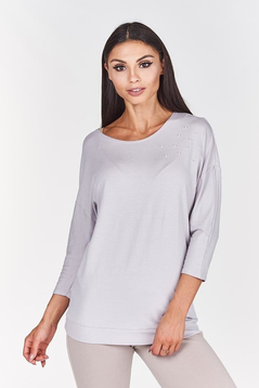 Klasyczna, cienka bluzka z 3\4 rękawem, dekolt pod szyję. Idealna pod marynarkę, w zestawieniu ze spódnicą tworzy idealną stylizację. Doskonale sprawdzi się jako codzienna bluzka. Plecy zabudowane, prosty fason, na przodzie ozdobne perełki, które dodają bluzeczce uroku. Wykonana w 91% z wiskozy i 9% z elastanu. Nie mechaci się. Przyjemna w dotyku. Jest uniwersalna, przez co sprawdzi się dla kobiet w każdym wieku.