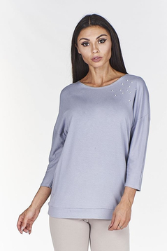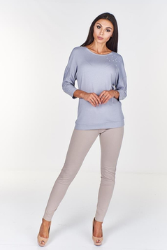 Klasyczna, cienka bluzka z 3\4 rękawem, dekolt pod szyję. Idealna pod marynarkę, w zestawieniu ze spódnicą tworzy idealną stylizację. Doskonale sprawdzi się jako codzienna bluzka. Plecy zabudowane, prosty fason, na przodzie ozdobne perełki, które dodają bluzeczce uroku. Wykonana w 91% z wiskozy i 9% z elastanu. Nie mechaci się. Przyjemna w dotyku. Jest uniwersalna, przez co sprawdzi się dla kobiet w każdym wieku.