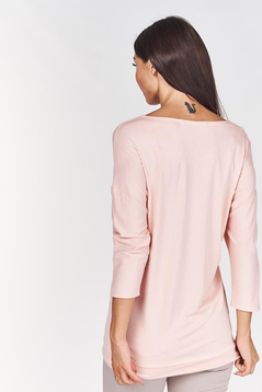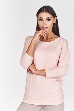 Klasyczna, cienka bluzka z 3\4 rękawem, dekolt pod szyję. Idealna pod marynarkę, w zestawieniu ze spódnicą tworzy idealną stylizację. Doskonale sprawdzi się jako codzienna bluzka. Plecy zabudowane, prosty fason, na przodzie ozdobne perełki, które dodają bluzeczce uroku. Wykonana w 91% z wiskozy i 9% z elastanu. Nie mechaci się. Przyjemna w dotyku. Jest uniwersalna, przez co sprawdzi się dla kobiet w każdym wieku.