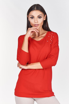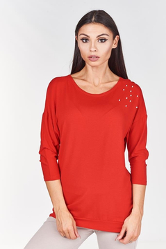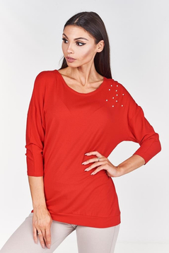 Klasyczna, cienka bluzka z 3\4 rękawem, dekolt pod szyję. Idealna pod marynarkę, w zestawieniu ze spódnicą tworzy idealną stylizację. Doskonale sprawdzi się jako codzienna bluzka. Plecy zabudowane, prosty fason, na przodzie ozdobne perełki, które dodają bluzeczce uroku. Wykonana w 91% z wiskozy i 9% z elastanu. Nie mechaci się. Przyjemna w dotyku. Jest uniwersalna, przez co sprawdzi się dla kobiet w każdym wieku.