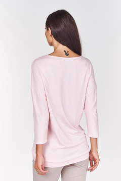 Klasyczna, cienka bluzka z 3\4 rękawem, dekolt pod szyję. Idealna pod marynarkę, w zestawieniu ze spódnicą tworzy idealną stylizację. Doskonale sprawdzi się jako codzienna bluzka. Plecy zabudowane, prosty fason, na przodzie ozdobne perełki, które dodają bluzeczce uroku. Wykonana w 91% z wiskozy i 9% z elastanu. Nie mechaci się. Przyjemna w dotyku. Jest uniwersalna, przez co sprawdzi się dla kobiet w każdym wieku.