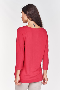 Klasyczna, cienka bluzka z 3\4 rękawem, dekolt pod szyję. Idealna pod marynarkę, w zestawieniu ze spódnicą tworzy idealną stylizację. Doskonale sprawdzi się jako codzienna bluzka. Plecy zabudowane, prosty fason, na przodzie ozdobne perełki, które dodają bluzeczce uroku. Wykonana w 91% z wiskozy i 9% z elastanu. Nie mechaci się. Przyjemna w dotyku. Jest uniwersalna, przez co sprawdzi się dla kobiet w każdym wieku.
