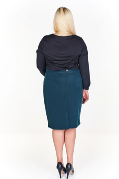Klasyczna, ołówkowa spódnica. W tali pasek o szerokości 3 cm, zapinany z tyłu na 1 guzik. Suwak kryty. Na dole rozporek zakładany, ułatwiający chodzenie. Uszyta ze stabilnej tkaniny. Jest podszewka. Dół podszyty ściegiem krytym. Bardzo uniwersalna spódnica, w zależności od pozostałych części garderoby, może mieć szerokie zastosowanie, np. w połączeniu z białą bluzką tworzy strój wizytowy, w zestawieniu z gładkim golfem – odpowiedni ubiór do pracy.