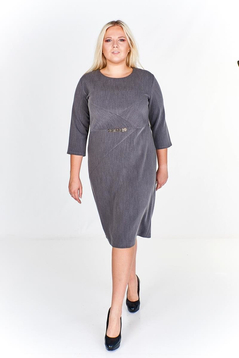 Dopasowana, ołówkowa sukienka. Dekolt okrągły. Na przodzie znajdują się fantazyjne, asymetryczne cięcia, modelujące talię oraz biust. Pas ozdobiony pozłacanym łańcuszkiem. Rękaw długości 3/4. Z tyłu zaszewki taliowe. Na środku tyłu suwak kryty oraz rozporek pozwalający na swobodne stawianie kroków. Sukienka została uszyta z bardzo dobrej jakościowo tkaniny. Nie ulega nadmiernemu gnieceniu i mechaceniu. Bez podszewki. Sukienkę polecamy kobietom w każdym wieku na co dzień, ale przy odpowiednim dobraniu dodatków sprawdzi się również w wyjściowej stylizacji. Jeśli chcesz wyglądać pięknie i czuć się komfortowo, to ta sukienka jest waśnienie dla Ciebie.