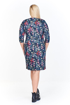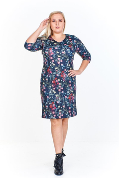 Sukienka FSU893 GRANATOWY kolorowe kwiatki
