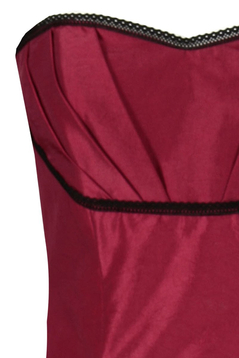 Szukasz wyjątkowej sukienki na karnawał, sylwestra, wesele lub studniówkę? Niesamowicie efektowny model, który wyraźnie zaznacza talię. Dół sukienki w specjalny sposób marszczony. Kreacja dla kobiet , które chcą podkreślić swoją osobowość. Sukienka składa się z dwóch części - spódnica zapinana z tyłu i gorset z wszyta szeroką gumą, dzięki któremu nieco podniesiesz, wymodelujesz biust, poprawisz swoja postawę. Sprawisz, że poczujesz się kobieco i wdzięcznie. Sznurowaniem z tyłu odpowiednio umocnisz i dopasujesz gorset do swojej sylwetki. Góra wykończona koronkową tasiemką. Tkanina gładka w jednolitym kolorze z połyskiem, w połączeniu z odpowiednimi dodatkami stworzysz wyjątkową kreacje, podkreślając przy tym swoją urodę. Spraw by ten wieczór był wyjątkowy a impreza niepowtarzalna.