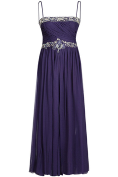 Zwiewna sukienka z szalem w zestawie. Uszyta została z niezwykle szlachetnego szyfonu-skład surowcowy 100% jedwab. Długość maxi. Na górnej krawędzi sukienki oraz w okolicy pasa znajdują się ozdobne aplikacje. W ich skład wchodzą koraliki, perełki, cekiny i wiele innych. Na biuście, oraz z tyłu na plecach znajdują się liczne, drobne zakładki. Na biuście zostały wszyte specjalne poduszki – miseczki mogące zastąpić biustonosz. Delikatne szyfonowe ramiączka. Plecy do połowy odkryte. Sukienka jest luźna w biodrach. Doskonale tuszuje defekty kobiecej sylwetki. Suwak kryty z boku. Jest podszewka – 100% acetat. Sukienka idealna dla uroczyste bale i przyjęcia, np. wesela, studniówki i wiele innych okazji.