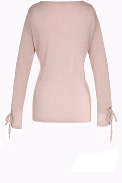 Sweterkowa, elegancka bluzka z ciekawym wiązaniem przy rękawach. Dzięki temu wygląda nietuzinkowo. Bluzka pasuje do większości stylizacji, jest uniwersalna przez swój kolor i fason. Idealna dla kobiet w każdym wieku.
