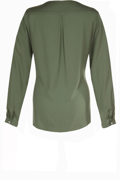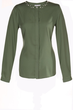 Elegancka koszulowa bluzka z długim rękawem. Przy szyi posiada ozdobny kołnierzyk  z perełkami, który nadaje bluzce eleganckiego charakteru. Bluzka przeznaczona dla kobiet ceniących eleganckie koszule. Świetnie sprawdzi się w zestawieniu z elegancką spódnicą lub spodniami.