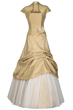 Szukasz wyjątkowej sukni na karnawał, sylwestra, wesele lub szalone stylowe panieńskie? Wyjątkowa i nietuzinkowa długa suknia. Gorsetem podkreślisz piękne ramiona i uwydatnisz biust,  wiązaniem z tyłu dobrze go dopasujesz. Materiał- połyskująca tafta, materiał ozdobnie marszczony poprzez drapowanie. spod spodu ozdobnie wystaje tiul z siateczki. Całość wygląda zjawiskowo i nie potrzeba tu więcej dodatków. Sukienka posiada koło na halce dzięki czemu ładnie się układa. Dopasowana góra, podkreślona talia, dół rozkloszowany - klasa i styl. Spraw by ten wieczór był wyjątkowy a impreza niepowtarzalna. Nie zawsze trafia się nam okazja, by pozwolić sobie na niecodzienny styl i poczuć się jak królowa balu. Idealna kreacja dla pań, które lubią podkreślić swoją osobowość.