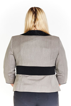 Szykuje się jakaś specjalna okazja, impreza rodzinna, wesele? Piękny żakiet -klasyka elegancji. Z charakterystycznym, kontrastowym wzorem. Kołnierz, mankiety i pas w geometryczny deseń. Bardzo elegancki wizytowy styl. Zapinany na dwa guziczki. Żakiet to Efektowny element naszej garderoby. W połączeniu z sukienką lub spódnicą możesz stworzyć szykowny powiew stylizacji na wiosnę/lato.