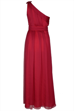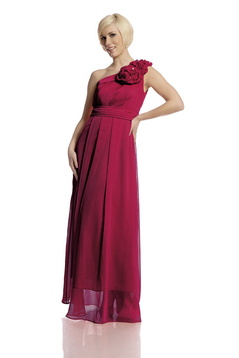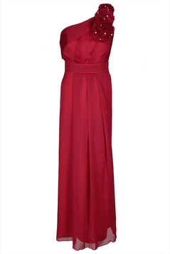 Asymetryczna, rozkloszowana, maxi sukienka, wzbudzająca podziw dosłownie wszystkich. Uszyta z dwutonowego szyfonu. Jest to niezwykle wyrafinowana tkanina. Przezroczysta, w dotyku bardzo delikatna, przypominająca szyfon jedwabny. Jest podszewka. Zakładana na jedno ramie, dołączone jest zapasowe cienkie ramiączko, które można doszyć do sukienki lub wykorzystać do biustonosza, zamiast niezbyt eleganckiego silikonowego. Talia zaakcentowana paskiem. Na przodzie i tyle zarówno na karczku jak i pod paskiem są szerokie miękko układające się zakładki. Charakteru dodają 3 bogate, różnej wielkości kwiaty, uszyte z tego samego materiału, dodatkowo ozdobione perełkami. Suwak kryty z boku. Jeśli chcesz zostać królową wieczoru, ta sukienka jest dla Ciebie. Polecamy na wesele, studniówkę lub Sylwestra.