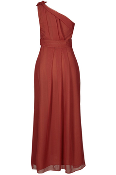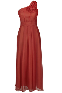 Asymetryczna, rozkloszowana, maxi sukienka, wzbudzająca podziw dosłownie wszystkich. Uszyta z dwutonowego szyfonu. Jest to niezwykle wyrafinowana tkanina. Przezroczysta, w dotyku bardzo delikatna, przypominająca szyfon jedwabny. Jest podszewka. Zakładana na jedno ramie, dołączone jest zapasowe cienkie ramiączko, które można doszyć do sukienki lub wykorzystać do biustonosza, zamiast niezbyt eleganckiego silikonowego. Talia zaakcentowana paskiem. Na przodzie i tyle zarówno na karczku jak i pod paskiem są szerokie miękko układające się zakładki. Charakteru dodają 3 bogate, różnej wielkości kwiaty, uszyte z tego samego materiału, dodatkowo ozdobione perełkami. Suwak kryty z boku. Jeśli chcesz zostać królową wieczoru, ta sukienka jest dla Ciebie. Polecamy na wesele, studniówkę lub Sylwestra.