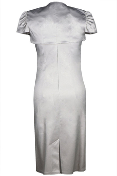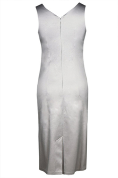 Piękna sukienka. Dekolt kopertowy. Na biuście delikatne marszczenia. Pod biustem odcięcie, oraz pasek, wiązany na lewym boku. Sukienka bez rękawa. Sukienka została uszyta z eleganckiej tkaniny - satyno-bawełny. Bez podszewki. Z tyłu na górze suwak kryty ułatwiający zakładanie. Na dole zakładany rozporek, umożliwiający swobodne chodzenie. Sukienka idealna dla kobiet ceniących świetny wygląd i komfort w użytkowaniu. Można w niej wystąpić na weselu, komunii, i wielu innych uroczystościach.
