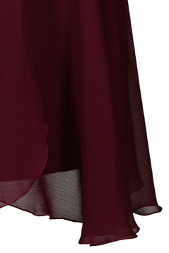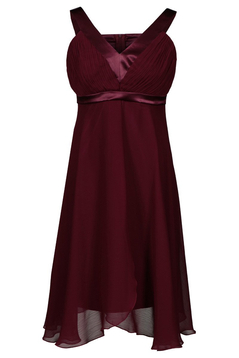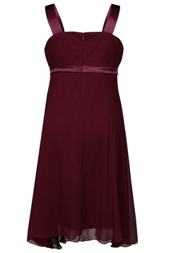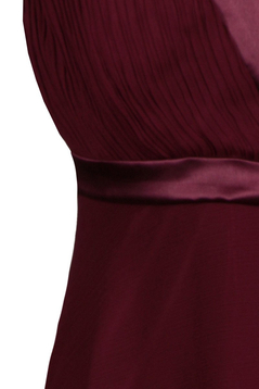 Zwiewna, rozkloszowana sukienka. Połączenie szyfonu z satyną. Na karczku z przodu efektowne, delikatne plisowanie nieco dodające biustowi objętości. Dekolt przodu w kształcie serka, wysmuklający szyję. Z tyłu – w kształcie karo. Szerokie ramiączka. Odcięcie pod biustem podkreślone wąskim paskiem. Zapinana z tyłu na kryty suwak ułatwiający zakładanie. Sukienka midi, doskonała na wesele, studniówkę i każdy inny uroczysty bal.