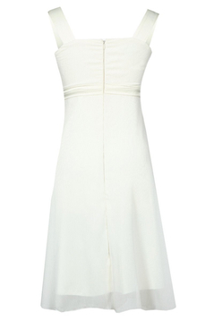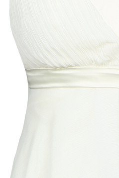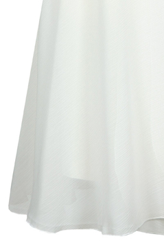 Zwiewna, rozkloszowana sukienka. Połączenie szyfonu z satyną. Na karczku z przodu efektowne, delikatne plisowanie nieco dodające biustowi objętości. Dekolt przodu w kształcie serka, wysmuklający szyję. Z tyłu – w kształcie karo. Szerokie ramiączka. Odcięcie pod biustem podkreślone wąskim paskiem. Zapinana z tyłu na kryty suwak ułatwiający zakładanie. Sukienka midi, doskonała na wesele, studniówkę i każdy inny uroczysty bal.