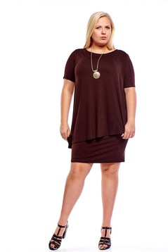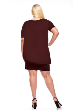 Dwuwarstwowa sukienka. Spód to prosta dopasowana tkanina. Doskonale opina każdą figurę, wierzch jest luźny i asymetryczny, z lewej, krótszej strony niezszyty. Układa się bardzo efektownie, tuszuje niedoskonałości sylwetki. Bardzo wygodna, nie krępuje ruchów. Dekolt w kształcie łódki, rękaw zwykły, krótki. Sukienka uszyta została z bardzo elastycznej, lejącej dzianiny – wiskozy. Skład surowcowy: 90% wiskoza, 10% elastan. Sukienkę polecamy kobietom w każdym wieku, na co dzień. Po dobraniu odpowiednich dodatków można stworzyć bardzo udaną stylizację na bardziej uroczyste wyjścia. Jeśli chcesz wyglądać wyjątkowo i czuć się komfortowo to ta sukienka jest właśnie dla Ciebie.