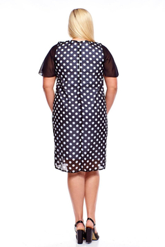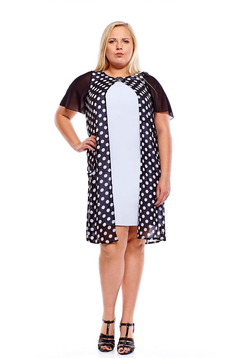 Dopasowana sukienka o prostym kroju, delikatnie taliowana. Do całości przyszyta szyfonowa narzutka - wzór: małe lub duże kropki. Sukienka jest idealna na upały, ale również dobrze sprawdzi się na przeróżne okazje. Ze szpilkami stworzysz niebanalną stylizację.