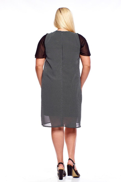 Dopasowana sukienka o prostym kroju, delikatnie taliowana. Do całości przyszyta szyfonowa narzutka - wzór: małe lub duże kropki. Sukienka jest idealna na upały, ale również dobrze sprawdzi się na przeróżne okazje. Ze szpilkami stworzysz niebanalną stylizację.