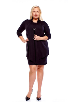 Szukasz sukienki idealnej na rozmaite okazje, spotkanie z przyjaciółmi? Chcesz przy tym zatuszować krągłe kształty, a nie lubisz banalnych fasonów? Wybierz sukienkę z dwóch warstw materiału. Górna części sukienki tworzy wrażenie, że w komplecie z nią dodano luźne, sięgające ud, bolero. Produkt wykonano z lejącej wiskozy. Wierzchni materiał wiruje wokół bioder, luźno je otula, bazowa część sukienki jest natomiast ołówkowa. To połączenie bardzo eleganckie i nieszablonowe wydobywa z figury to, co najlepsze – krągłości stają się apetyczne, co docenią puszyste panie, a te pozbawione kobiecych kształtów, "oszukają" optycznie otoczenie, zyskując je.