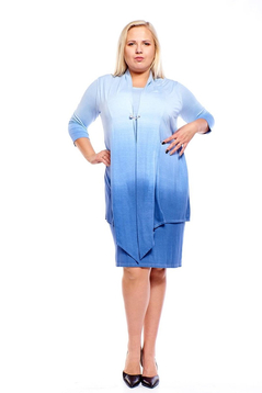 Szukasz sukienki idealnej na rozmaite okazje, spotkanie z przyjaciółmi? Chcesz przy tym zatuszować krągłe kształty, a nie lubisz banalnych fasonów? Wybierz sukienkę z dwóch warstw materiału. Górna części sukienki tworzy wrażenie, że w komplecie z nią dodano luźne, sięgające ud, bolero. Produkt wykonano z lejącej wiskozy. Wierzchni materiał wiruje wokół bioder, luźno je otula, bazowa część sukienki jest natomiast ołówkowa. To połączenie bardzo eleganckie i nieszablonowe wydobywa z figury to, co najlepsze – krągłości stają się apetyczne, co docenią puszyste panie, a te pozbawione kobiecych kształtów, "oszukają" optycznie otoczenie, zyskując je.