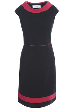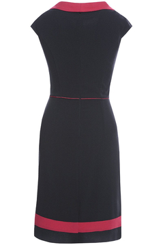 Klasyczna, dopasowana sukienka. Dekolt okrągły z efektownym kołnierzem. Na ramionach jest delikatna, wąska plisa. Z przodu i z tyłu cięcia francuskie. Talia podkreślona wypustką. Sukienka została uszyta z lekko elastycznej tkaniny, która nie ulega gnieceniu i mechaceniu. Bez podszewki. Z tyłu suwak kryty, oraz rozporek ułatwiający swobodne chodzenie. Sukienka przeznaczona jest dla kobiet w różnym wieku na uroczyste okazje, np. wesela, ale można ją nosić również na co dzień.
