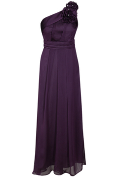 Asymetryczna, rozkloszowana, maxi sukienka, wzbudzająca podziw dosłownie wszystkich. Uszyta z dwutonowego szyfonu. Jest to niezwykle wyrafinowana tkanina. Przezroczysta, w dotyku bardzo delikatna, przypominająca szyfon jedwabny. Jest podszewka. Zakładana na jedno ramie, dołączone jest zapasowe cienkie ramiączko, które można doszyć do sukienki lub wykorzystać do biustonosza, zamiast niezbyt eleganckiego silikonowego. Talia zaakcentowana paskiem. Na przodzie i tyle zarówno na karczku jak i pod paskiem są szerokie miękko układające się zakładki. Charakteru dodają 3 bogate, różnej wielkości kwiaty, uszyte z tego samego materiału, dodatkowo ozdobione perełkami. Suwak kryty z boku. Jeśli chcesz zostać królową wieczoru, ta sukienka jest dla Ciebie. Polecamy na wesele, studniówkę lub Sylwestra.