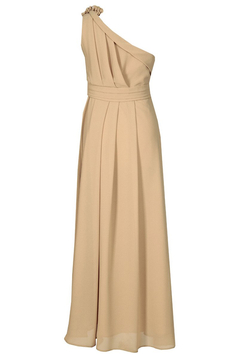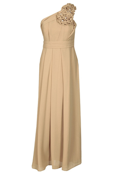 Asymetryczna, rozkloszowana, maxi sukienka, wzbudzająca podziw dosłownie wszystkich. Uszyta z dwutonowego szyfonu. Jest to niezwykle wyrafinowana tkanina. Przezroczysta, w dotyku bardzo delikatna, przypominająca szyfon jedwabny. Jest podszewka. Zakładana na jedno ramie, dołączone jest zapasowe cienkie ramiączko, które można doszyć do sukienki lub wykorzystać do biustonosza, zamiast niezbyt eleganckiego silikonowego. Talia zaakcentowana paskiem. Na przodzie i tyle zarówno na karczku jak i pod paskiem są szerokie miękko układające się zakładki. Charakteru dodają 3 bogate, różnej wielkości kwiaty, uszyte z tego samego materiału, dodatkowo ozdobione perełkami. Suwak kryty z boku. Jeśli chcesz zostać królową wieczoru, ta sukienka jest dla Ciebie. Polecamy na wesele, studniówkę lub Sylwestra.