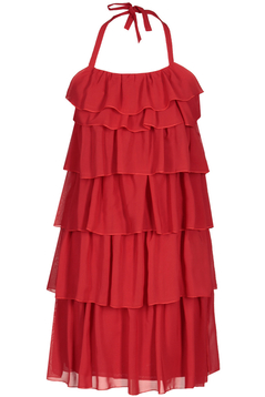 Ultra kobieca sukienka wiązana na szyi w całości pokryta modnymi falbankami. Świetnie eksponuje nogi i ramiona tuszując brak talii czy duże biodra. W całości wykonana z szyfonu. Idealnie sprawdzi się na imprezy, studniówki, osiemnastki czy po prostu na randkę.