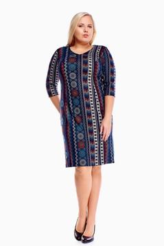 Sukienka o prostym kroju, taliowana. Idealna dla kobiet dojrzałych, świetnie sprawdza się w codziennej stylizacji podkreślając nasz styl każdego dnia. Bardzo ładnie leży na paniach w większych rozmiarach uwydatniając ich okrągłe atuty. Dekolt w lekki szpic ładnie wysmukla szyje. Sukienka bardzo kobieca, wzorzysta w stonowanych barwach. Z powodzeniem można do niej nosić marynarki lub żakiety.