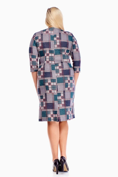 Sukienka o prostym kroju, taliowana. Idealna dla kobiet dojrzałych, świetnie sprawdza się w codziennej stylizacji podkreślając nasz styl każdego dnia. Bardzo ładnie leży na paniach w większych rozmiarach uwydatniając ich okrągłe atuty. Dekolt w lekki szpic ładnie wysmukla szyje. Sukienka bardzo kobieca, wzorzysta w stonowanych barwach. Z powodzeniem można do niej nosić marynarki lub żakiety.
