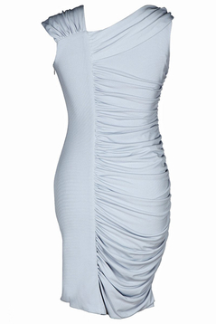 Dopasowana, seksowna sukienka uszyta z najwyższej jakości dzianiny. Asymetryczny dekolt, z boku przez całą długość przebiega fantazyjne drapowanie. Dostępna w wielu jednolitych kolorach, jak również w różnorodnych wzorach. Plecy częściowo odkryte, długość uniwersalna. Dzianina, którą użyto do uszycia sukienki jest bardzo elastyczna. Opina ciało, podkreślając kobiece kształty. Idealna na wesela, przyjęcia urodzinowe i wiele innych imprez. Szczególnie polecamy młodym kobietom.