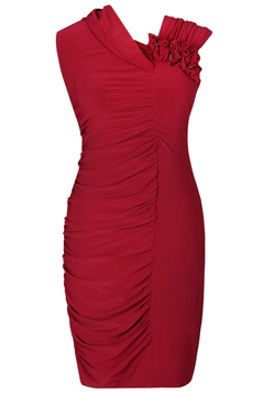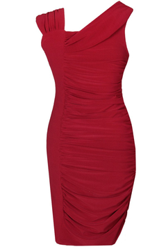 Dopasowana, seksowna sukienka uszyta z najwyższej jakości dzianiny. Asymetryczny dekolt, z boku przez całą długość przebiega fantazyjne drapowanie. Dostępna w wielu jednolitych kolorach, jak również w różnorodnych wzorach. Plecy częściowo odkryte, długość uniwersalna. Dzianina, którą użyto do uszycia sukienki jest bardzo elastyczna. Opina ciało, podkreślając kobiece kształty. Idealna na wesela, przyjęcia urodzinowe i wiele innych imprez. Szczególnie polecamy młodym kobietom.