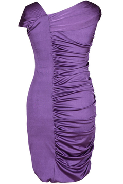 Dopasowana, seksowna sukienka uszyta z najwyższej jakości dzianiny. Asymetryczny dekolt, z boku przez całą długość przebiega fantazyjne drapowanie. Dostępna w wielu jednolitych kolorach, jak również w różnorodnych wzorach. Plecy częściowo odkryte, długość uniwersalna. Dzianina, którą użyto do uszycia sukienki jest bardzo elastyczna. Opina ciało, podkreślając kobiece kształty. Idealna na wesela, przyjęcia urodzinowe i wiele innych imprez. Szczególnie polecamy młodym kobietom.