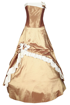 Szukasz wyjątkowej sukni na karnawał, sylwestra, wesele lub szalone stylowe panieńskie? Wyjątkowa i nietuzinkowa długa suknia. Gorsetem podkreślisz i uwydatnisz biust, wyeksponujesz piękne ramiona. Materiał- połyskująca tafta, efektownie podpięta wierzchnia warstwa dodatkowo przyozdobiona tiulem i kwiatem, kontrastowe wykończenie również nad biustem stroi całość. Sukienka posiada koło na halce dzięki czemu ładnie się układa. Dopasowana góra, podkreślona talia, dół rozkloszowany - klasa i styl. Spraw by ten wieczór był wyjątkowy a impreza niepowtarzalna. Nie zawsze trafia się nam okazja, by pozwolić sobie na niecodzienny styl i poczuć się jak królowa balu. Idealna kreacja dla pań, które lubią podkreślić swoją osobowość.