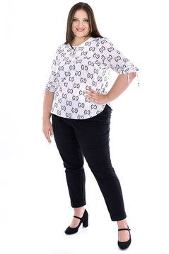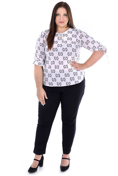 Bluzka FBZ1034 EKRI + CZARNY wzór G