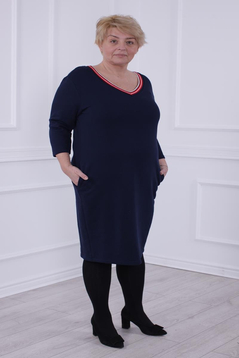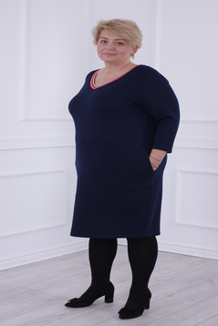Prosta sukienka z lekko zaznaczoną talią. Doskonale tuszuje niedoskonałości sylwetki. Uszyta została z grubej, ciepłej dzianiny. Dekolt w  kształcie litery V wykończony  ozdobną taśmą.  Rękaw  ¾ . Dół lekko zwężony . Na biodrach funkcjonalne kieszenie. Rękawy długości 3/4.  Bez suwaka, bez podszewki. Sukienka  idealna na zimowe i chłodne dni. Polecamy kobietom w każdym wieku, idealna na co dzień do pracy.