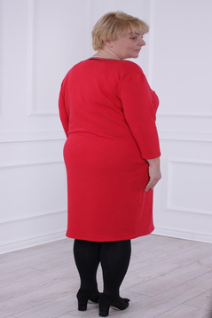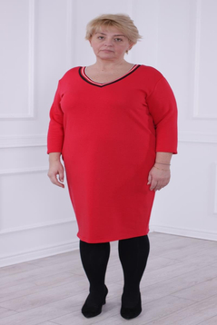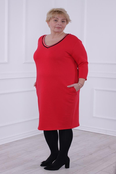 Prosta sukienka z lekko zaznaczoną talią. Doskonale tuszuje niedoskonałości sylwetki. Uszyta została z grubej, ciepłej dzianiny. Dekolt w  kształcie litery V wykończony  ozdobną taśmą.  Rękaw  ¾ . Dół lekko zwężony . Na biodrach funkcjonalne kieszenie. Rękawy długości 3/4.  Bez suwaka, bez podszewki. Sukienka  idealna na zimowe i chłodne dni. Polecamy kobietom w każdym wieku, idealna na co dzień do pracy.