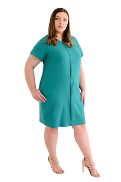 Sukienka, wykonana z lnu z domieszką poliestru, zapewnia oddychanie ciału, przewiewność i będzie fantastyczna na upalny czas. Nie będzie się też gniotła, dzięki czemu zapewni nieskazitelny wygląd przez cały dzień. Krój minimalistyczny, zbliżony do ołówkowego, długość przed kolano, krótki rękaw, dekolt w łódkę – całość jednak została uzupełniona o plisę, która przechodzi pionowo przez środek sukienki. Podkreśla linię biustu, brzucha, aż do kolan, czyniąc sukienkę wyrafinowaną. Subtelny akcent skupia uwagę, dzięki czemu drobne mankamenty figury schodzą na drugi plan. Zestawienie sukienki z sandałkami na obcasie pozwoli uzyskać oszałamiający efekt, nie sposób nie zwrócić wówczas na siebie uwagi.